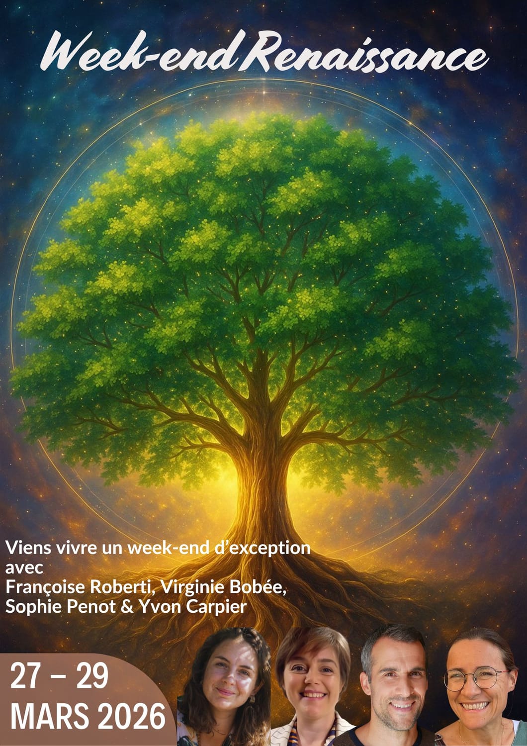 Nous sommes quatre âmes passionnées et nous t’invitons à vivre un événement transformationnel unique, pensé comme un véritable portail de renaissance intérieure.